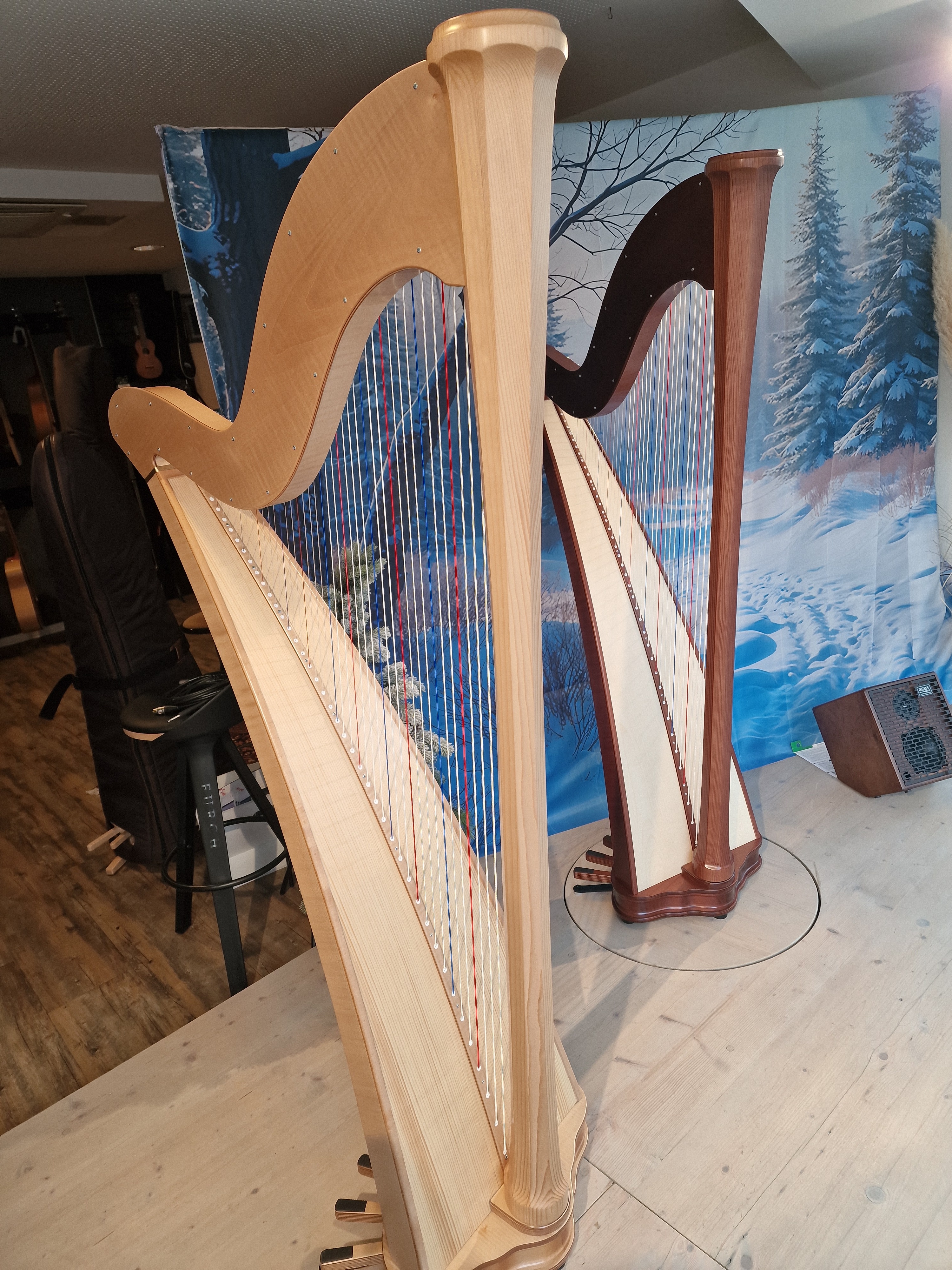 Gerne laden wir Sie ein, diese Instrumente persönlich zu testen. Vor Ort haben Sie zudem die Möglichkeit, die neue Ahorn-Volksharfe direkt mit unserer bewährten Volksharfe aus massivem Fichtenholz zu vergleichen. So können Sie die unterschiedlichen Klangcharaktere in Ruhe erleben und die Harfe finden, die am besten zu Ihrem musikalischen Empfinden passt.