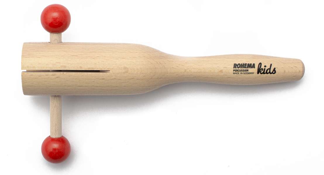 Das Rakatak ist ein Rhythmusinstrument mit einem hohlen und nach oben hin geöffneten Klangkörper mit einem Schlitz, der zur Klangentfaltung beiträgt. Durch diesen Klangkörper ist ein beweglicher Klöppel gesteckt, der mit der Bewegung des Instrumentes an die beiden Seiten des Hohlkörpers anschlägt. So wird ein genauer und akzentuierter Klang erzeugt. Der Ton erinnert an das Klappern der Klapperschlange oder Pferdegetrappel. Mit dem Rakatak lassen sich so zum Beispiel hervorragend Kniereiterverse begleiten oder Klanggeschichten untermalen. Wir fertigen das Rakatak aus feinstem Buchenholz aus heimischen Wäldern. Die rote Lackierung der Kugeln ist speichel- und schweißecht und somit absolut unbedenklich, auch für kleine Kinder. Das rote Rakatak hat einen hellen Klang.