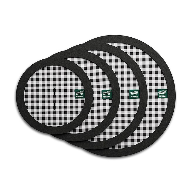 Das Rohema Mr. Muff Muffin Set 10" / 12" / 14" / 16" ist ein praktisches Dämpfer-Set, das Trommeln und Becken den typischen Vintage Sound verleiht. Zur Dämpfung von Snare oder Toms nutzen viele von jeher Geschirr- oder Baumwolltücher. Hierbei entsteht oftmals das Problem, dass diese während des Spielens herunterrutschen. Der Wollfilzring gepaart mit dem Stofftuch aus 100% Baumwolle passt perfekt auf alle gängigen Trommelgrößen. Für einen größeren Dämpfungseffekt können alle Muffins ineinander gestapelt werden.